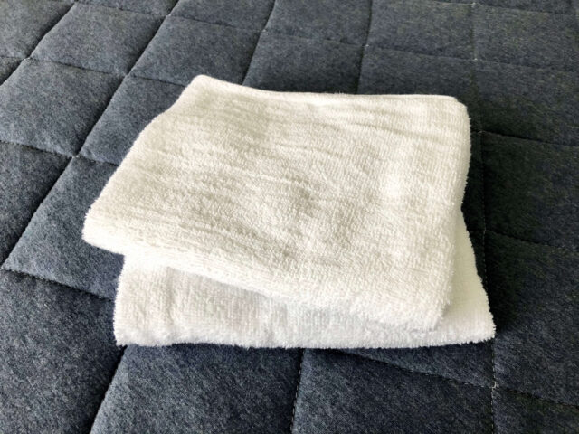 ちなみにタオルは、ふるさと納税の返礼品でいただいた大阪泉州の白のフェイスタオルです。