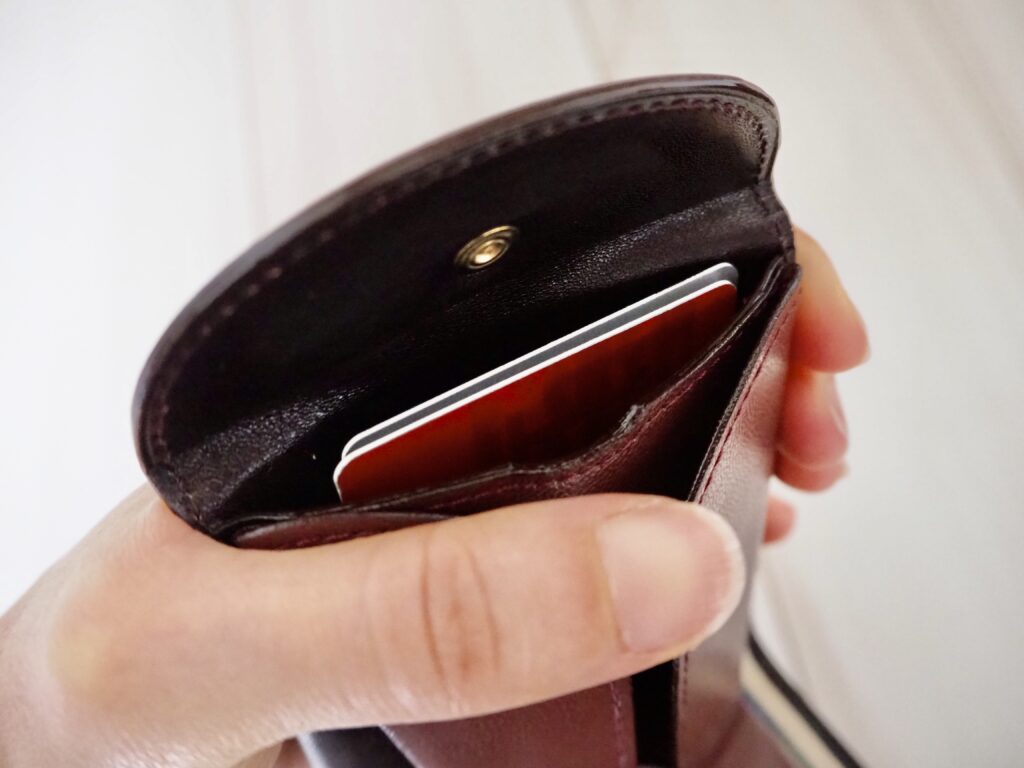 ちなみにカードはいつも4枚ほど入れています(クレジットカード2枚、キャッシュカード1枚、免許証)