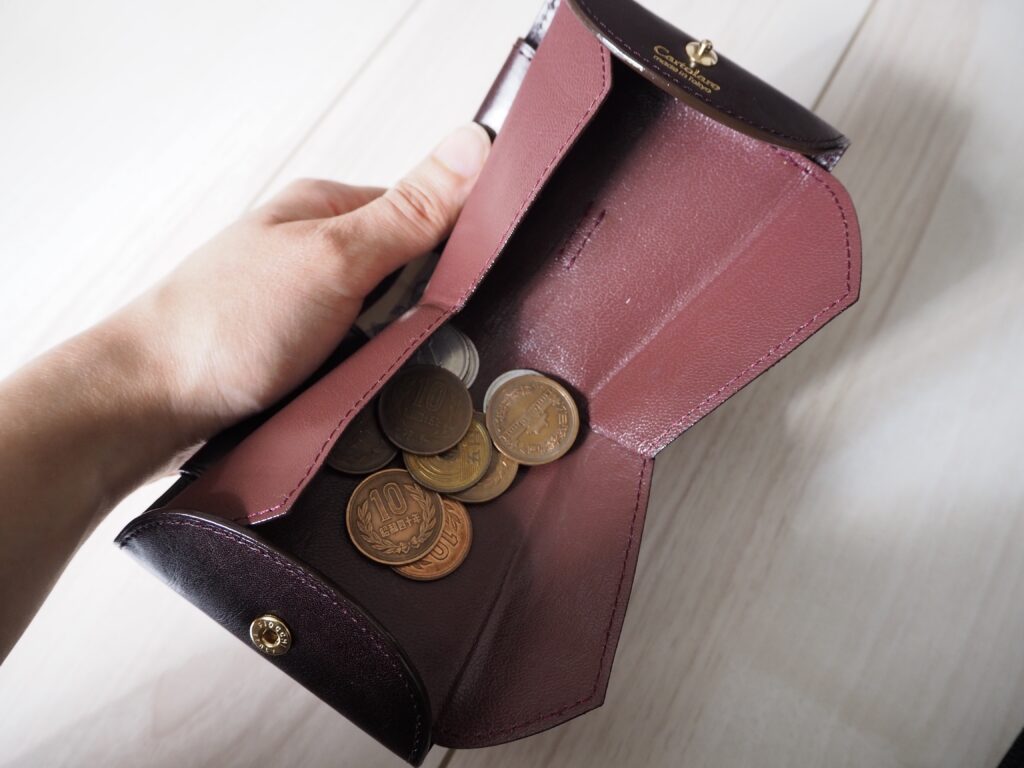 このように小銭入れの横の壁部分を大きく開くことができるので、小銭の見やすさ・取り出しやすさが素晴らしいです。