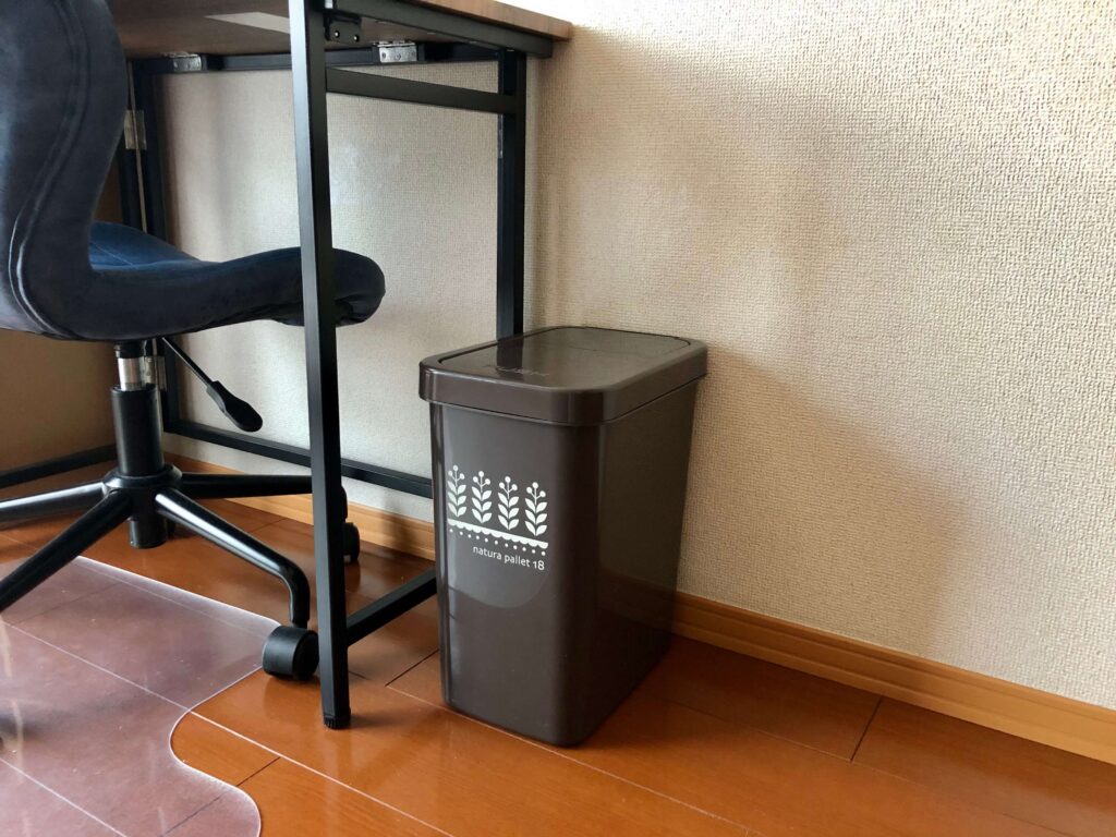 定位置はデスクのすぐ隣で、いつでもサッとゴミを捨てられるようにしています。