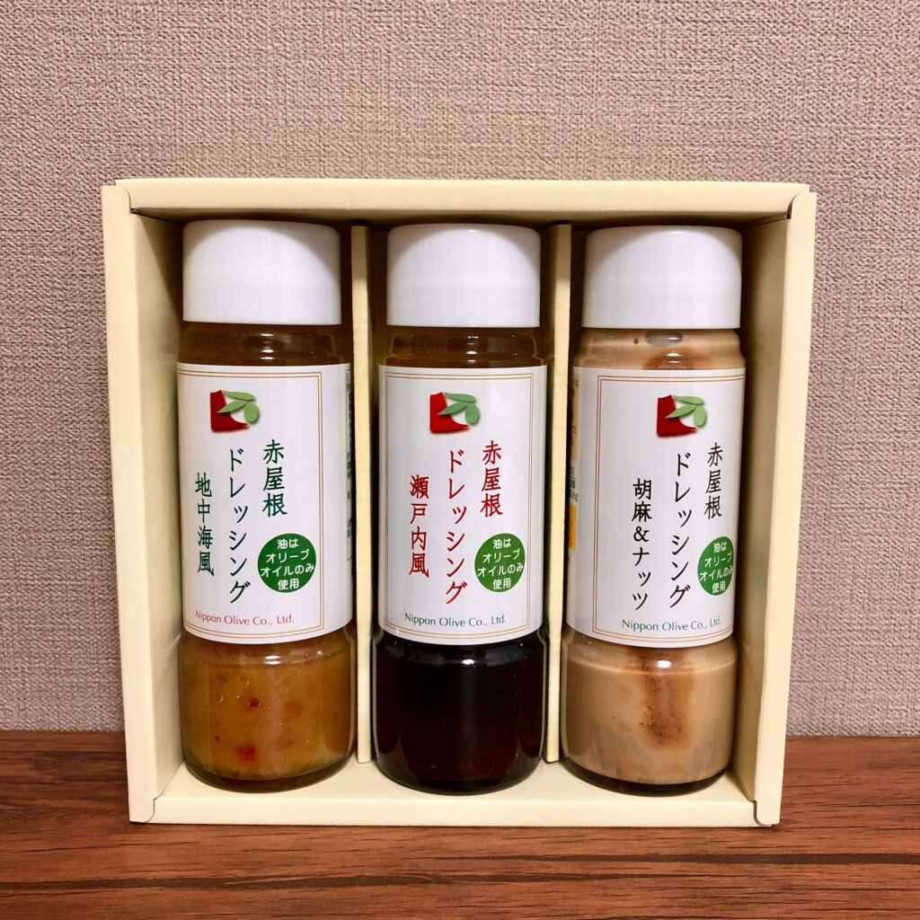 今年はオリーブオイルを使ったドレッシングを選んでみました。(ちなみに、昨年ははちみつセットでした)